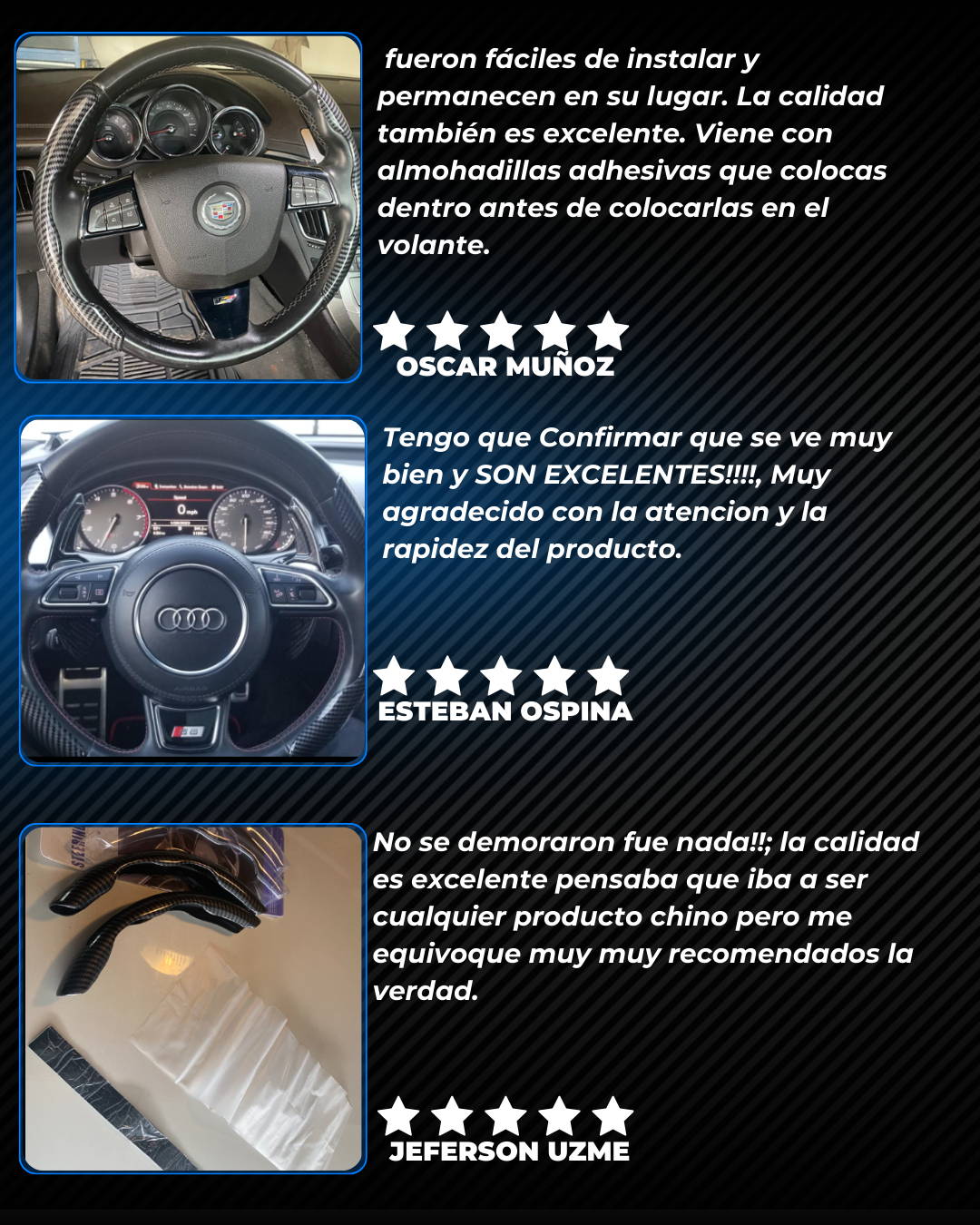 Su estilo de fibra de carbono hará que tu carro se vea completamente distinto por dentro, se sentirá más premium y te dará más agarré a la hora de manipularlo. ✅